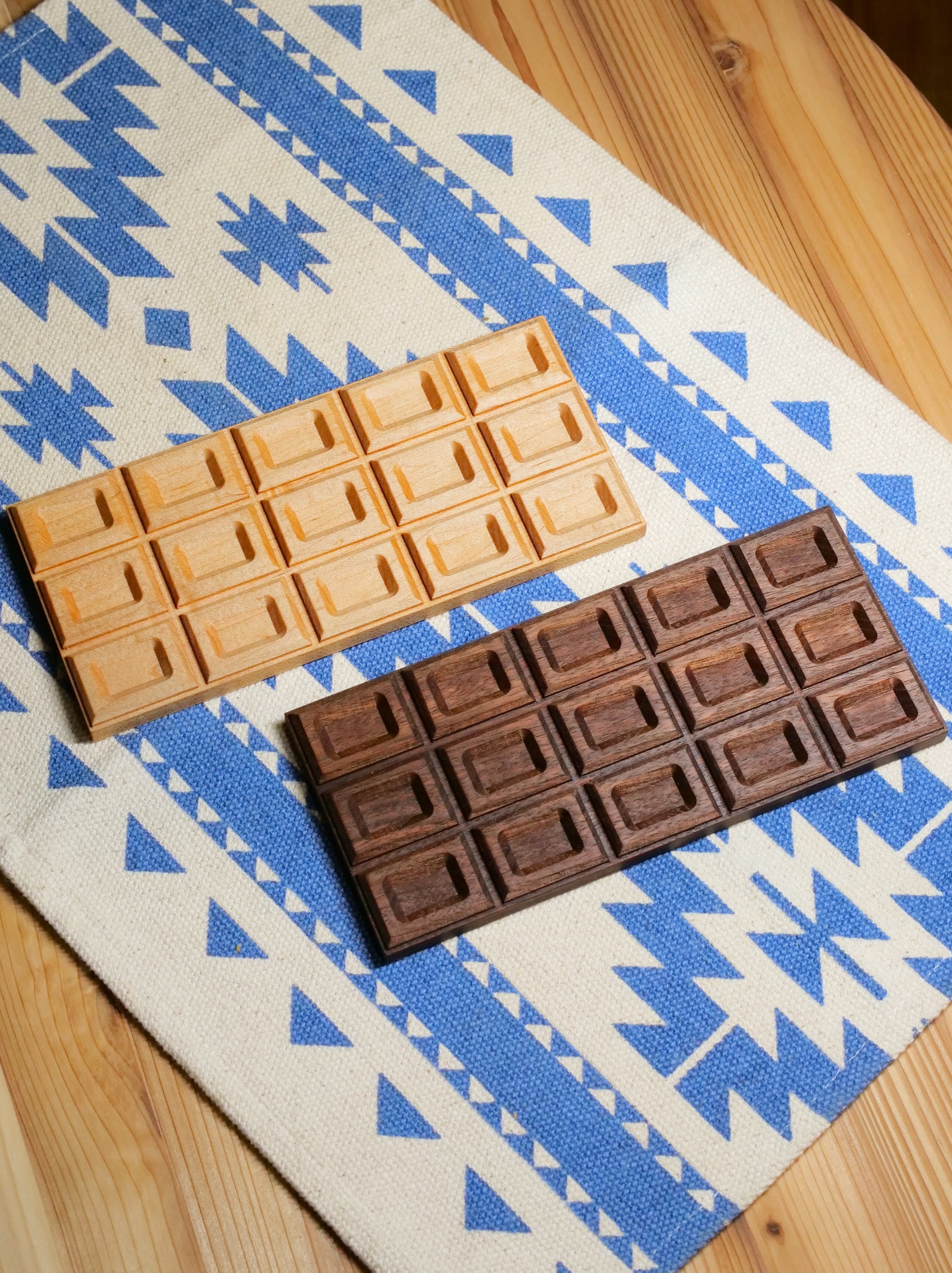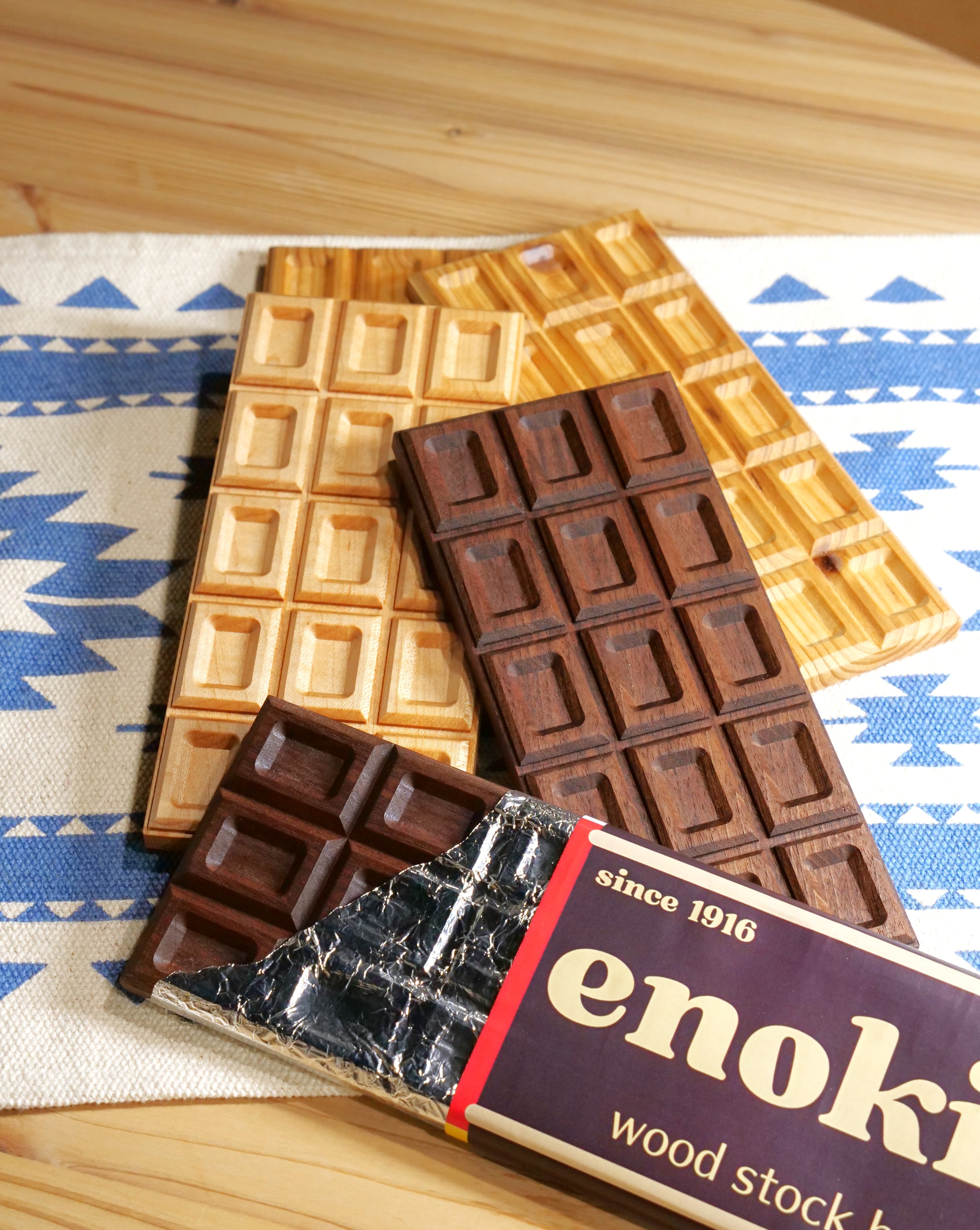 チョコ好きのための木のディスプレイ&トレー。