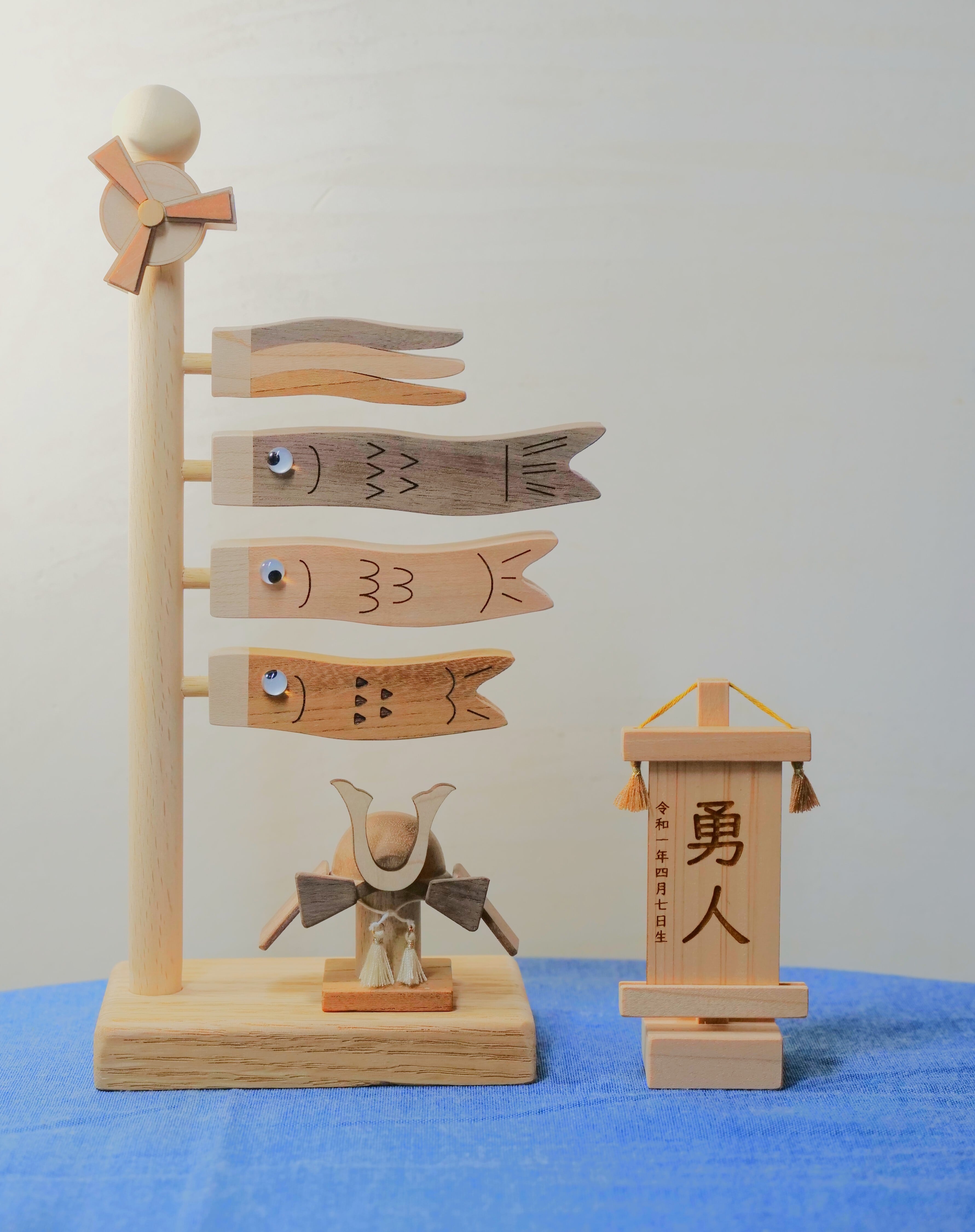 それぞれ異なる木を使い、色や表情の違いで鯉のぼりを表現しました。